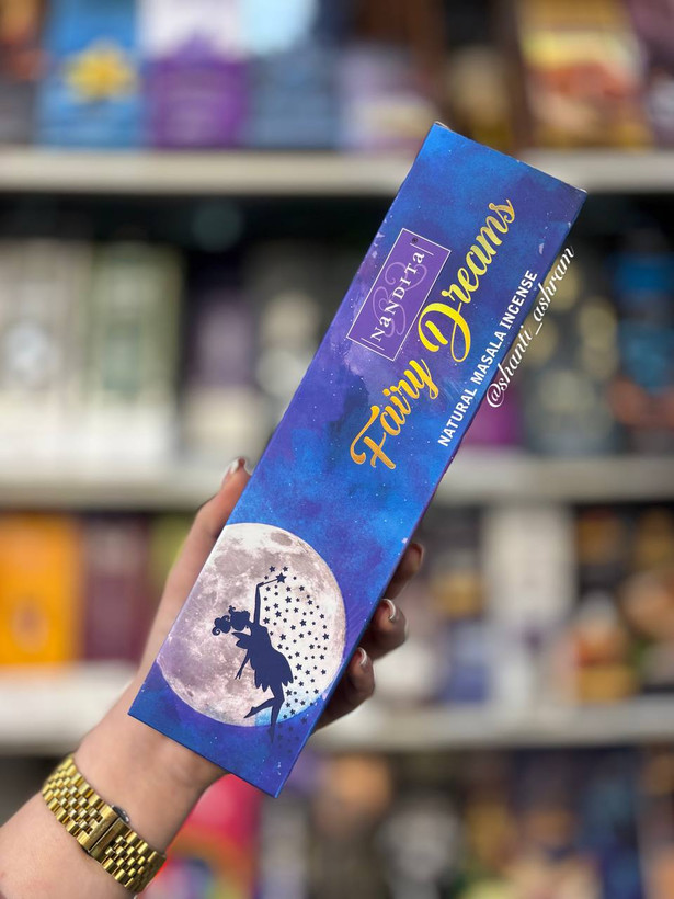 عود فِری دریمز (رویای افسانهای) Fairy Dreams محصولی دستساز از برند ناندیتا در هند است که از گیاهان طبیعی، ریشه و روغنهای کمیاب تهیه شده. کیفیت بالا و رایحه ماندگار آن باعث محبوبیت زیادش شده و نسبت به عودهای کارخانهای برتری دارد. این عود بهصورت شاخهای در بستههای ۲۵ تا ۳۰ عددی و وزن ۵۰ گرم عرضه میشود.