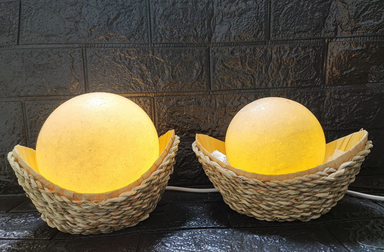 آباژور گوی سنگ نمک ۱۲ سانت با پایه سبد